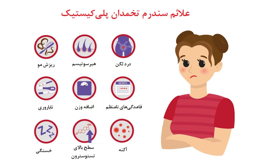 علائم PCOS می‌تواند در هر فرد متفاوت باشد و شدت آن از خفیف تا شدید متغیر است. شایع‌ترین علائم شامل موارد زیر است: